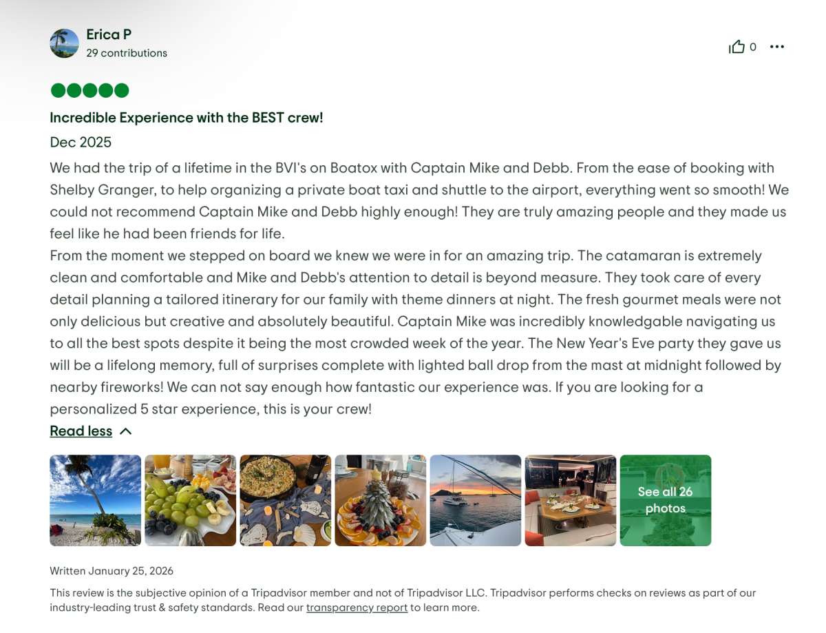'Boatox' es un Sailing Catamaran con capacidad para 6 huéspedes, disponible para charter con tripulación con base en USVI / BVI / SXM.