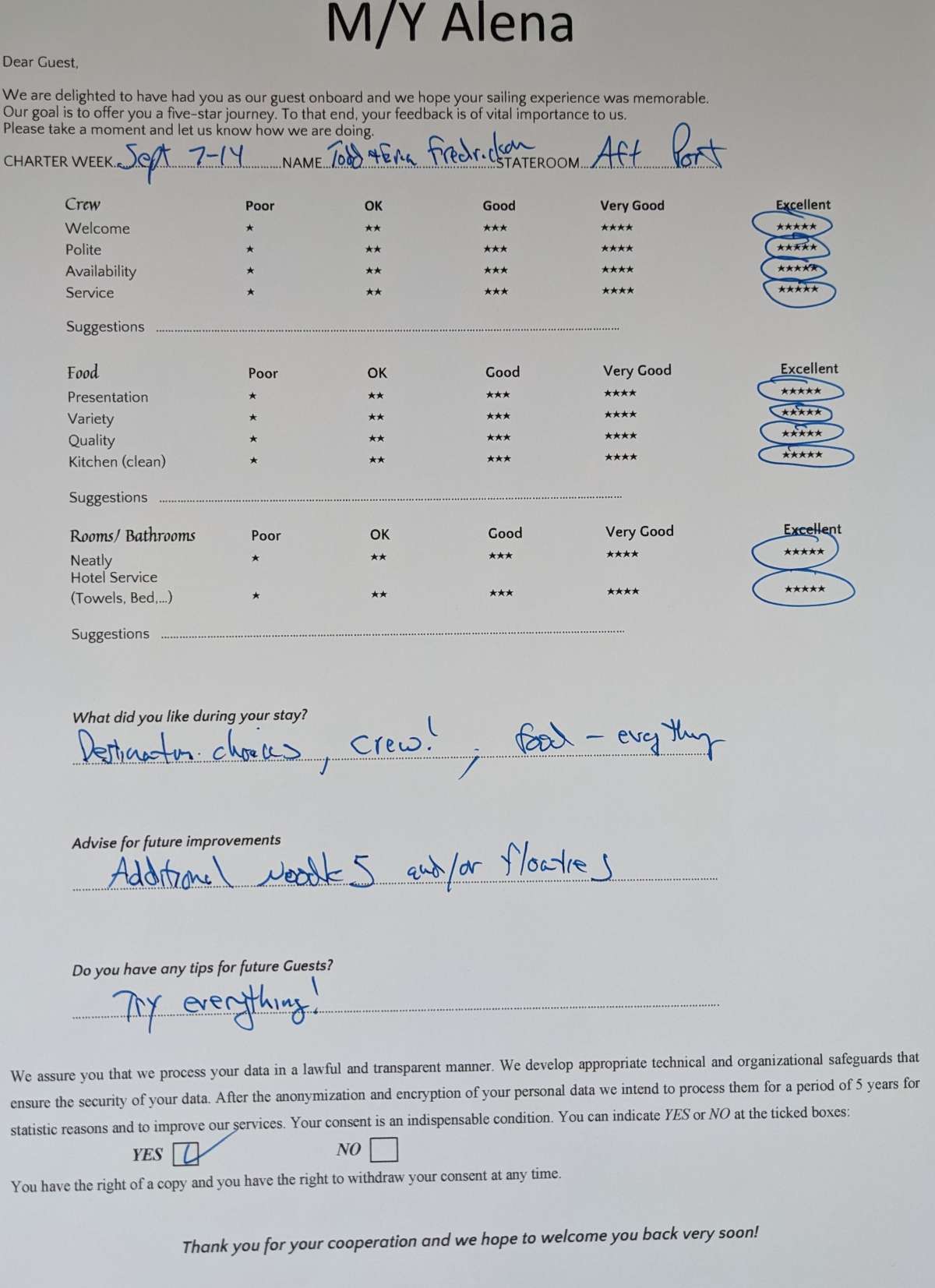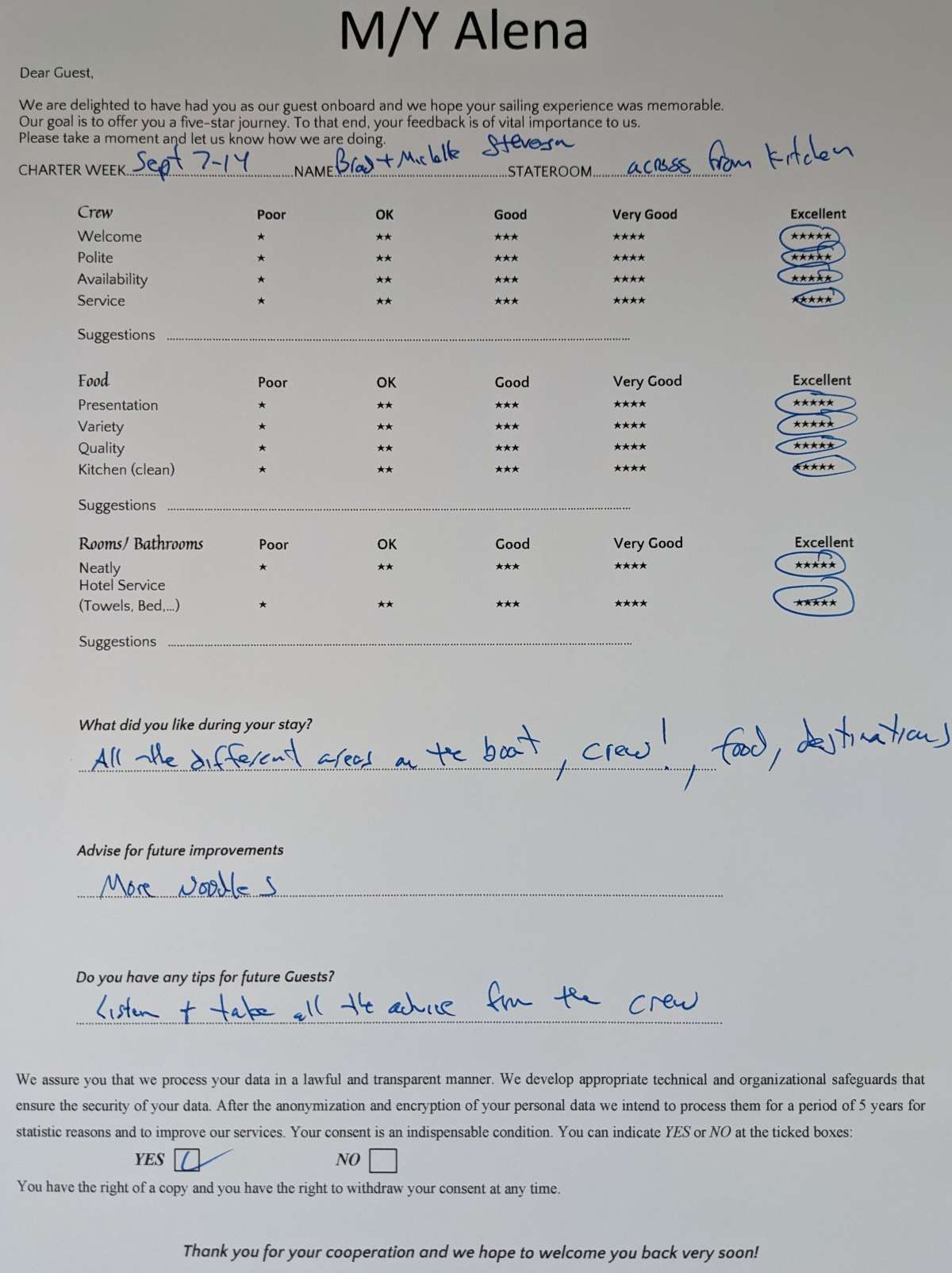 He is familiar with the latest culinary trends and developments, is able to adapt his menu to different guest preferences and is continually looking to improve and evolve his skills and techniques to provide the best dining experience for his guests on board! He is excited to further continue to grow and develop in his field as a yacht chef on Alena and is grateful for the challenges and rewards the yacht industry and the personal guest feedback brings with it.