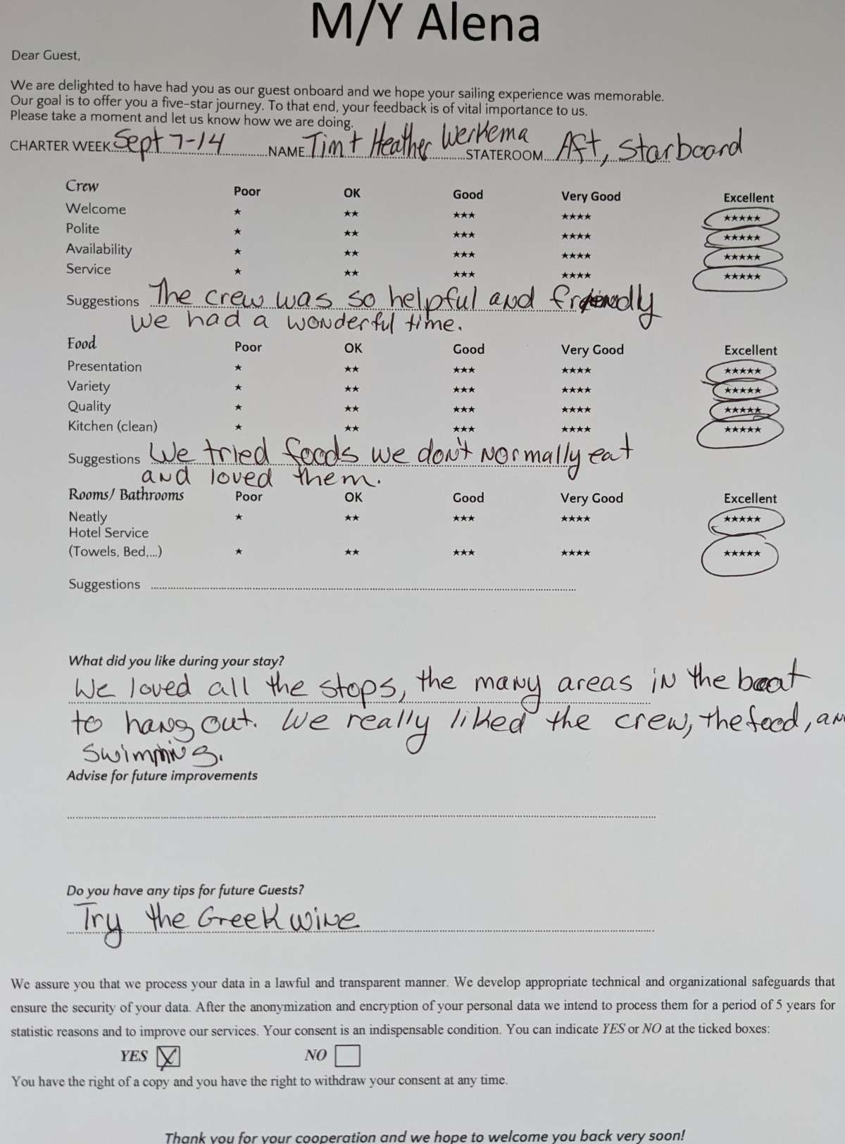 Charter Alena, complete with a fantastic crew of three, and be ready to have all your needs catered to!