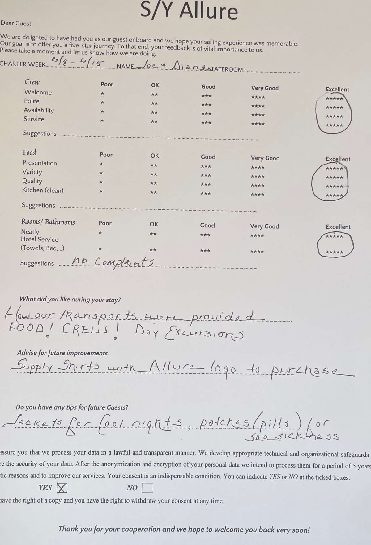 Her professional crew of three — a long-standing and perfectly synchronized team — ensures an exceptional charter experience defined by warm hospitality, gourmet dining, and seamless service. Their dedication and genuine care have earned S/Y Allure 59 a loyal base of repeat guests who return year after year to relive the magic.