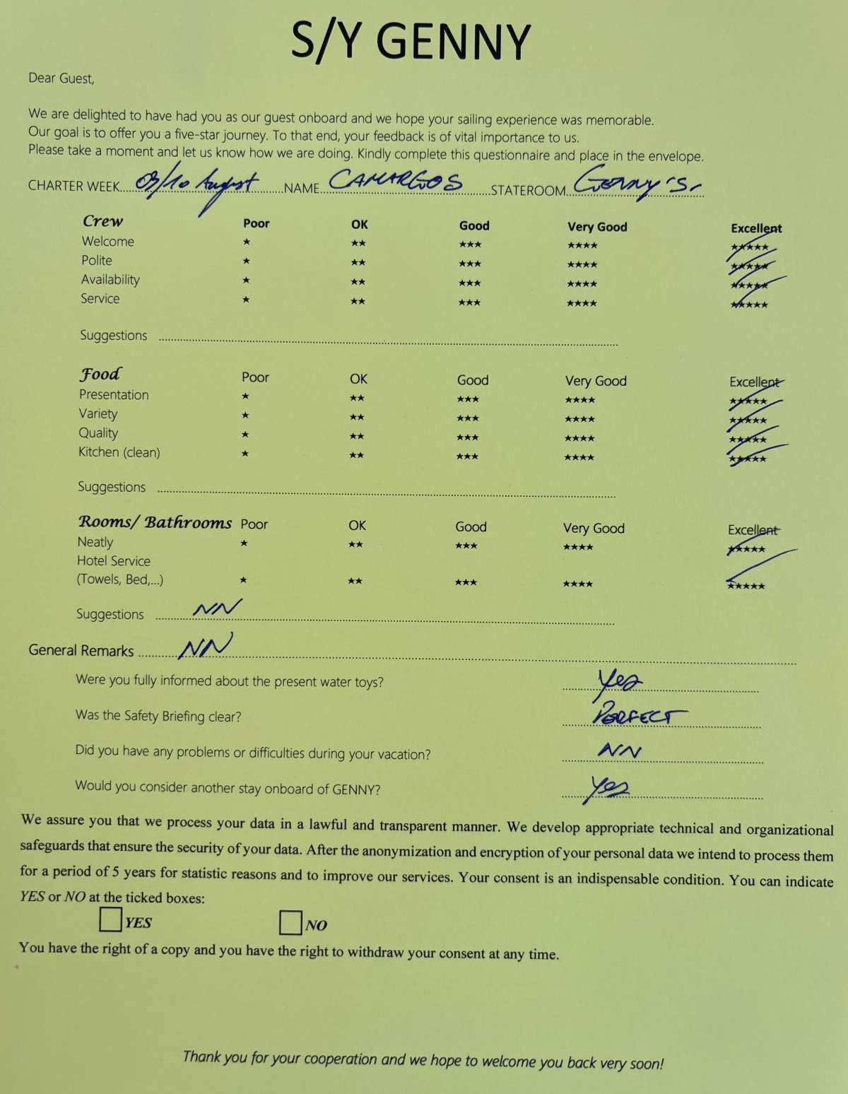 Genny’s professional crew of six, including a highly experienced captain and a talented gourmet chef, ensures that every guest receives personalized service and world-class hospitality. From tailored itineraries to exquisite dining experiences, every detail is crafted to perfection, allowing guests to simply relax and enjoy the journey.
