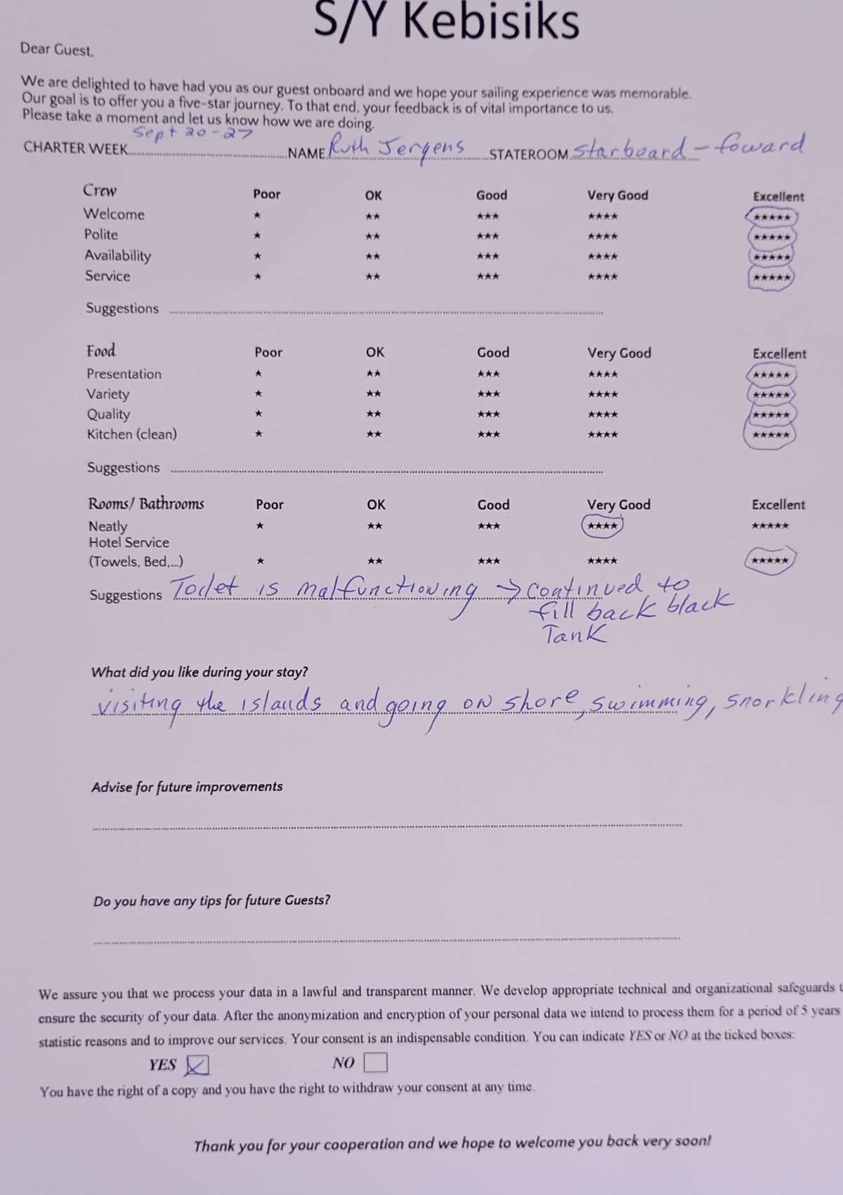 Measuring 15.91m (50.8 ft) and accommodating up to 10 guests in 5 beautifully appointed cabins, including a spacious Maestro cabin with a queen-size bed and four double cabins, all with en-suite bathrooms, she promises an unforgettable charter experience.