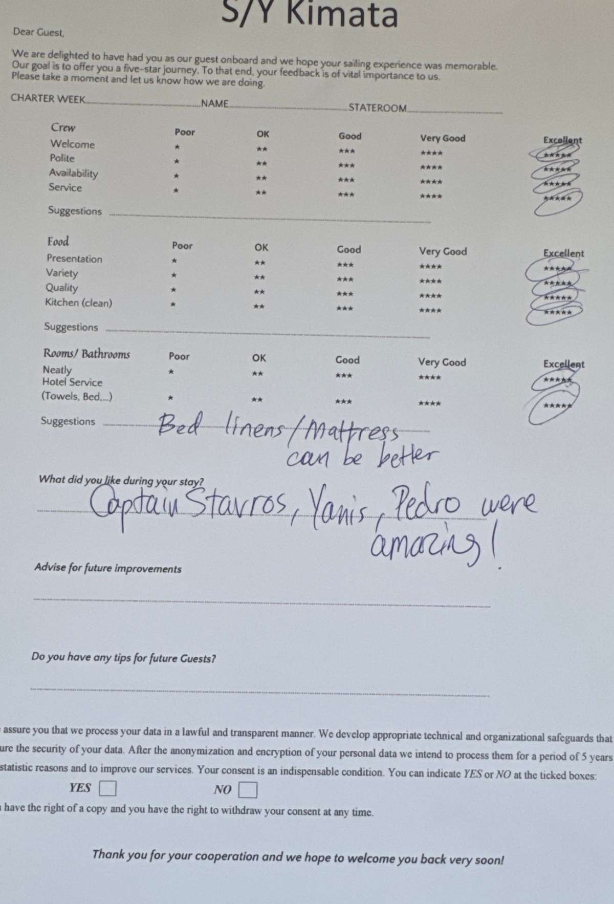 Kimata was the perfect boat for us! She is beautiful and spacious, just right for our group.