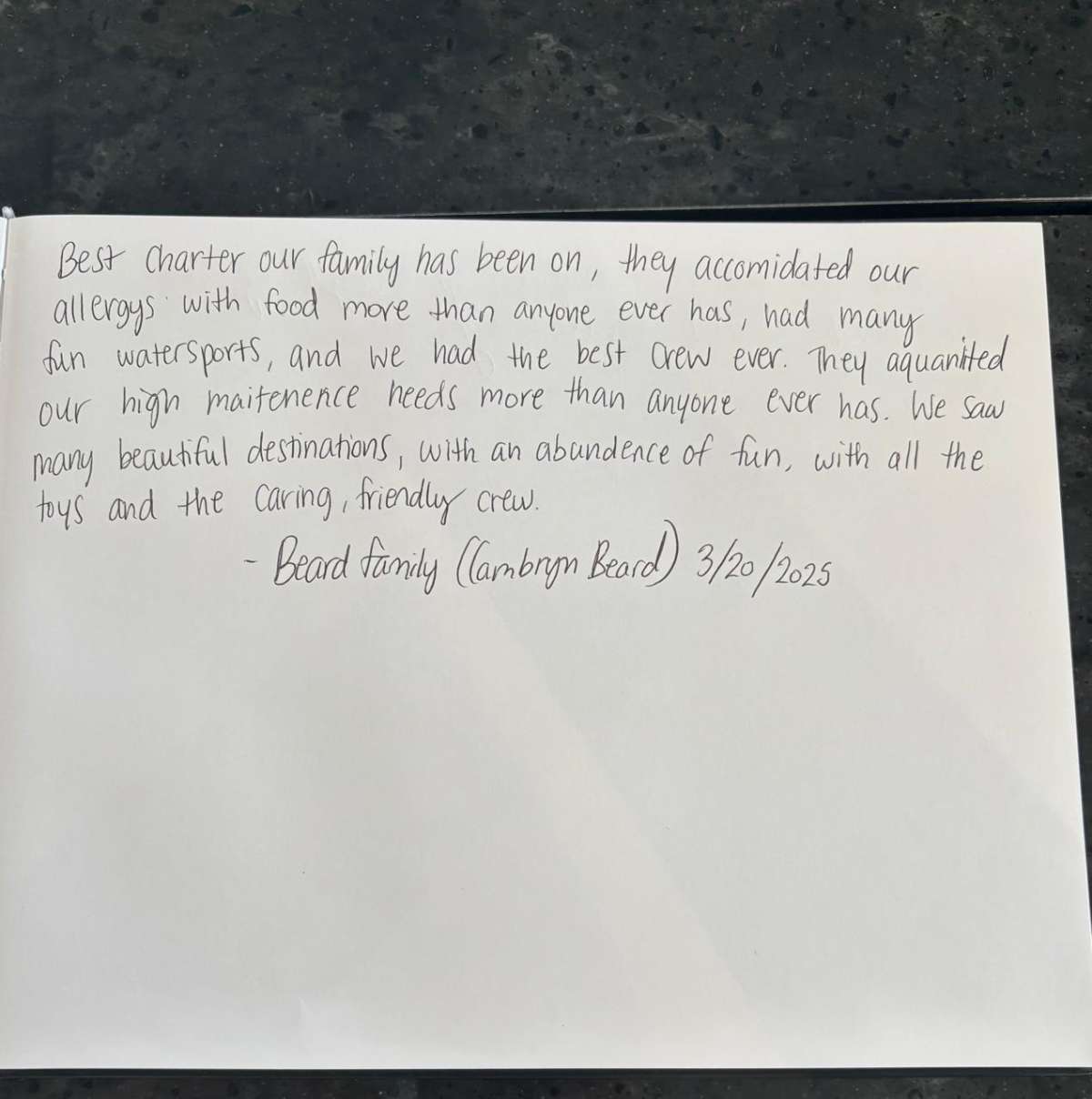 MARIA THERESE Description and Charter Summary Information