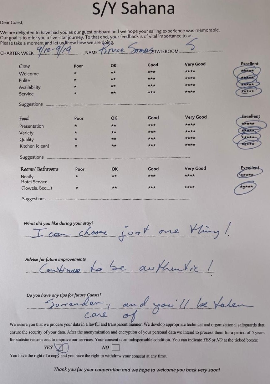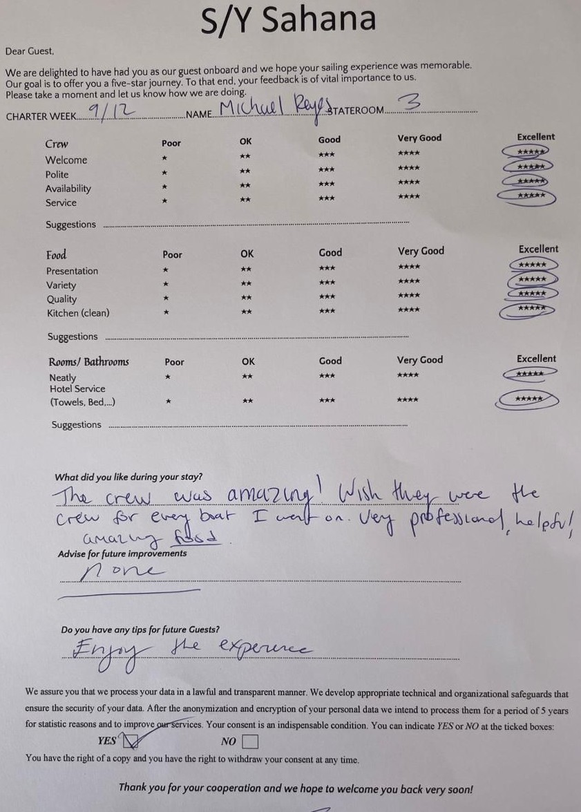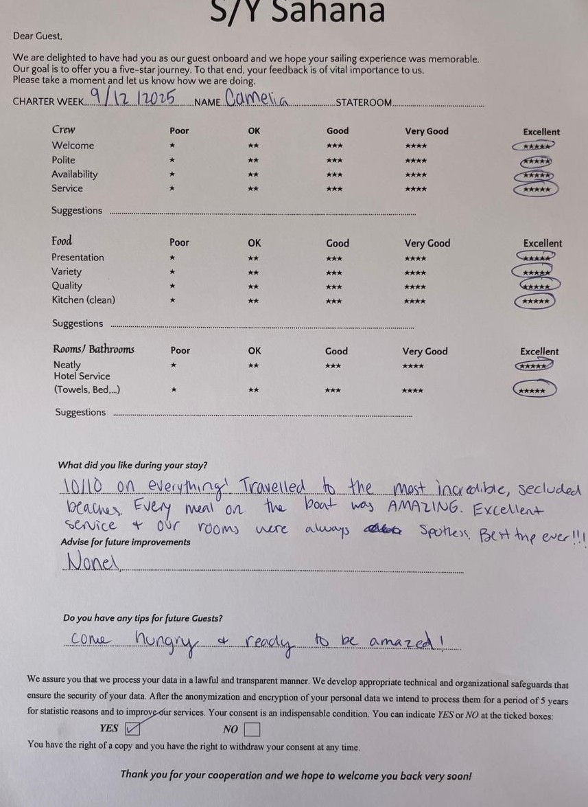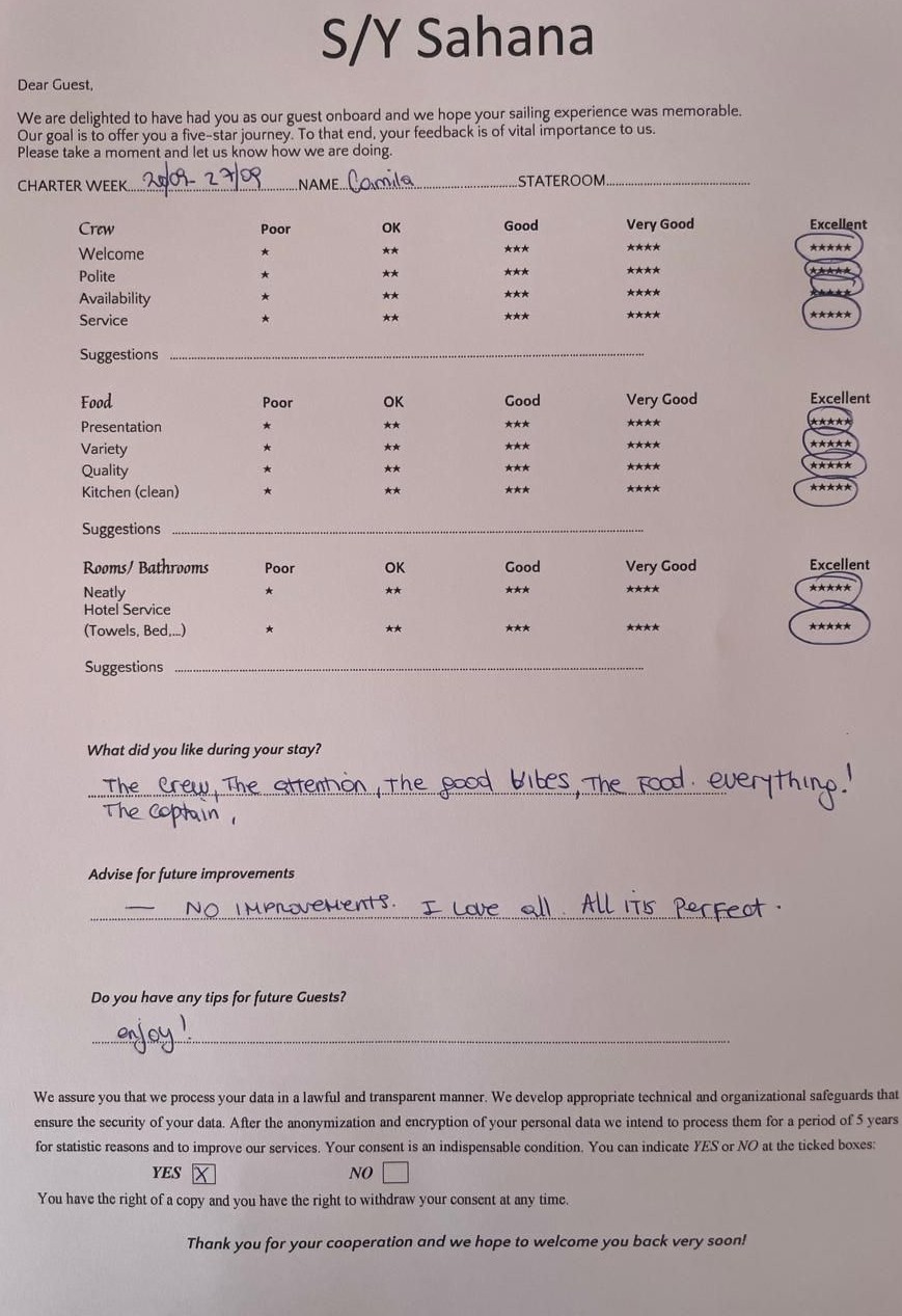 Sahana is not just a yacht; it is a floating haven with a wonderful crew of three dedicated professionals who are committed to ensuring that every moment on board is nothing short of perfection. From personalized service to expert navigation, the crew of Sahana is there to cater to your every need and create unforgettable memories during your Greek island adventure.