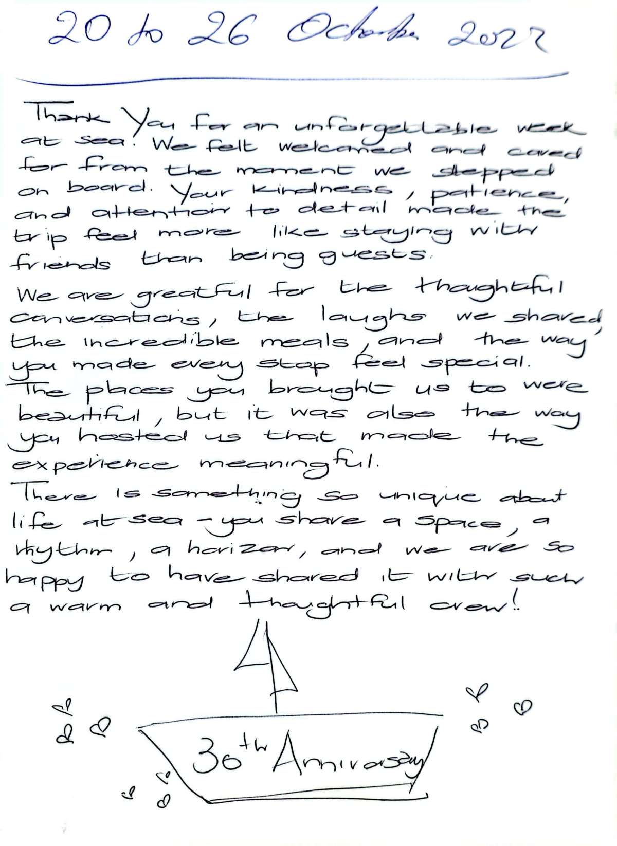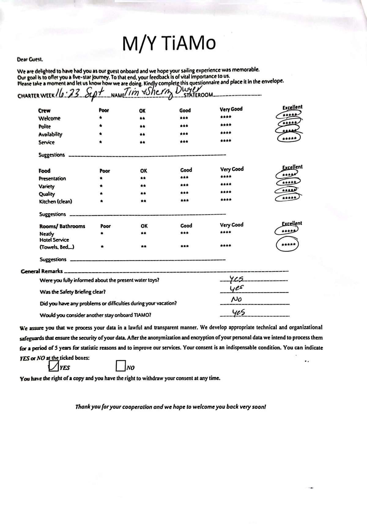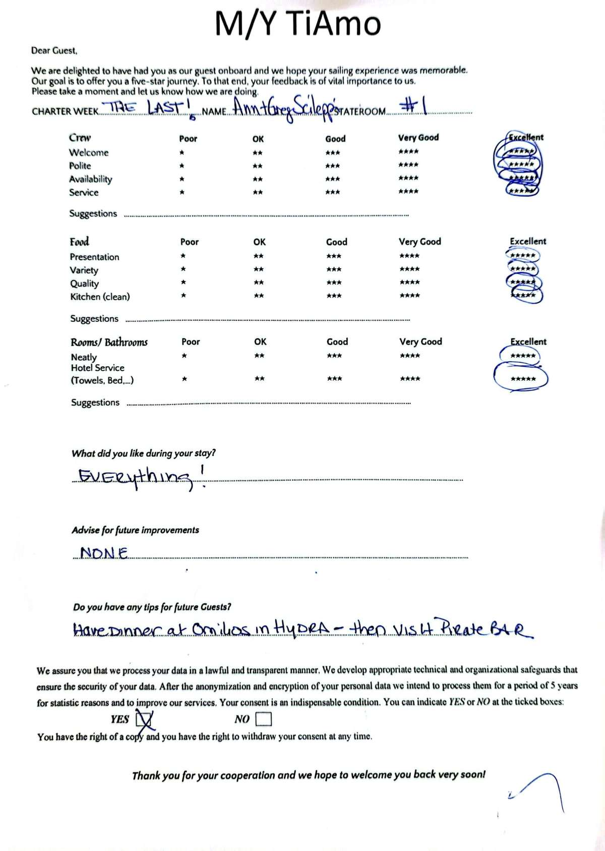 "What a successful charter we just had on TI AMO - I adore this crew, they are so wonderful, the client could not have been happier so thank you for making this last minute booking such a success as always!"Sarah