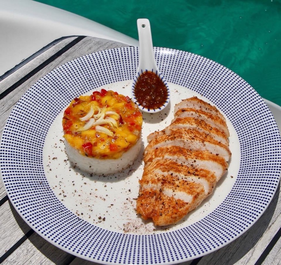 The crew provides a gourmet culinary experience on board Isolablue with fine foods surrounded by the beauty of the Grenadine islands. They can adapt to most diets (gluten free, diary free, vegetarian, vegan…. ) Please request the flyer on Gourmet Charters for further information.