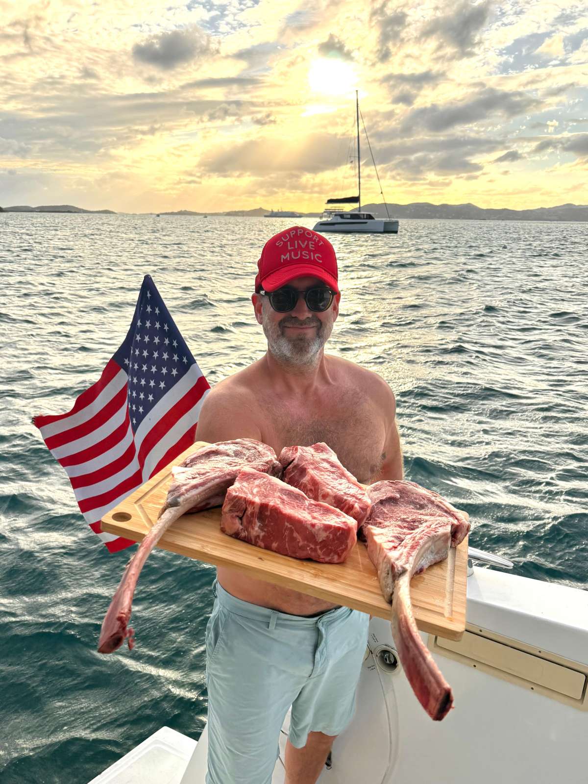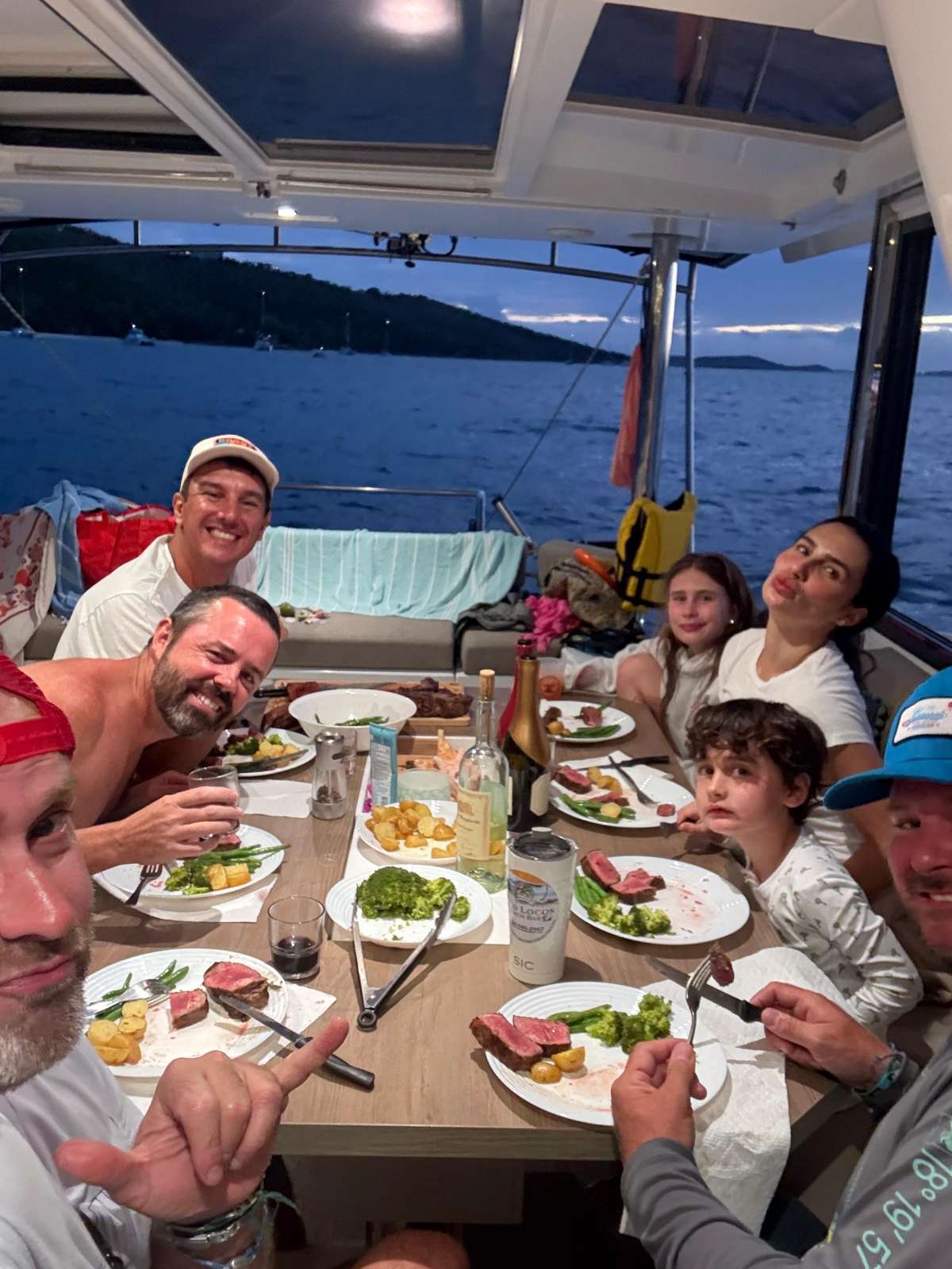 MAH NA MAH NA is a 2023 Bali 4.4 designed for open-air Caribbean cruising with Bali’s signature “bow-to-stern” flow and a bright, modern feel. Sleeps 6 adults in 3 Queen cabins—each with a private ensuite—plus 2 compact forepeak berths suited for kids/teens or a young adult (accessed via adjoining cabins). Highlights include the full-width salon-to-cockpit layout with panoramic windows, a flybridge with daybed lounges and shaded seating, and a roomy interior with an L-shaped galley and seating for 8–10. Comfort and capability are dialed in with Starlink, solar + generator support, full A/C, watermaker, and a full-size fridge/freezer with ice maker. Add captain-guided ease and plenty of on-the-water fun, and MAH NA MAH NA delivers flexible, stylish island time.