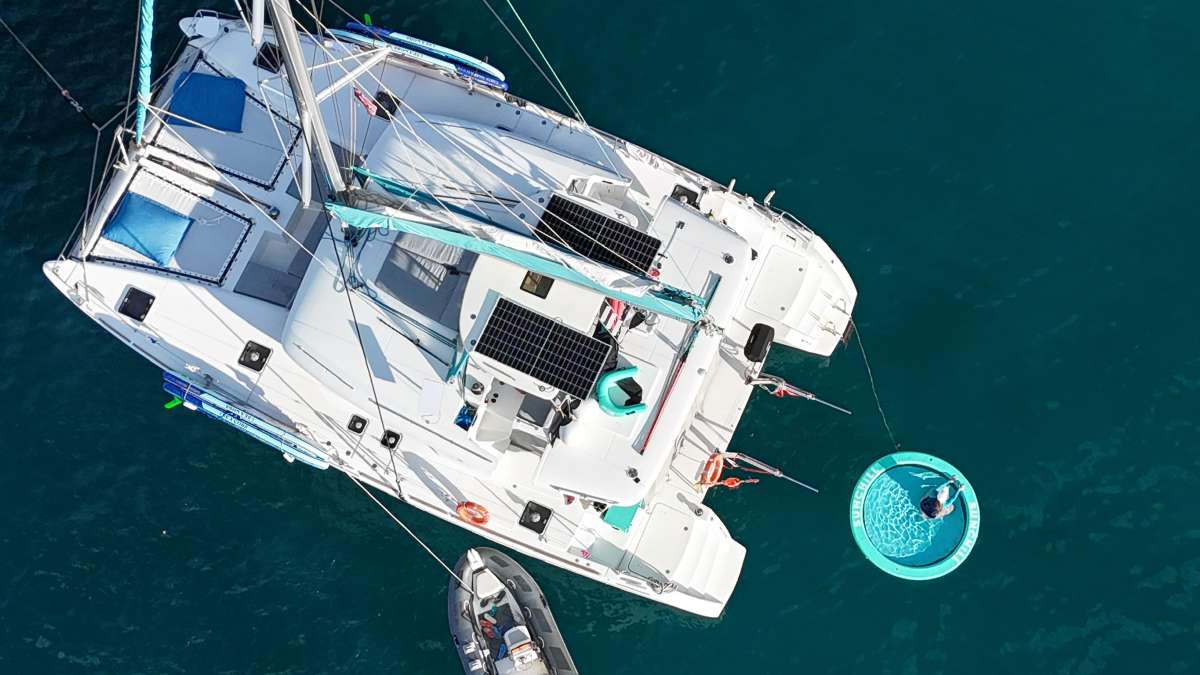 Forward there are trampolines and a great seating area. This new yacht is going to be a popular lady without a doubt!