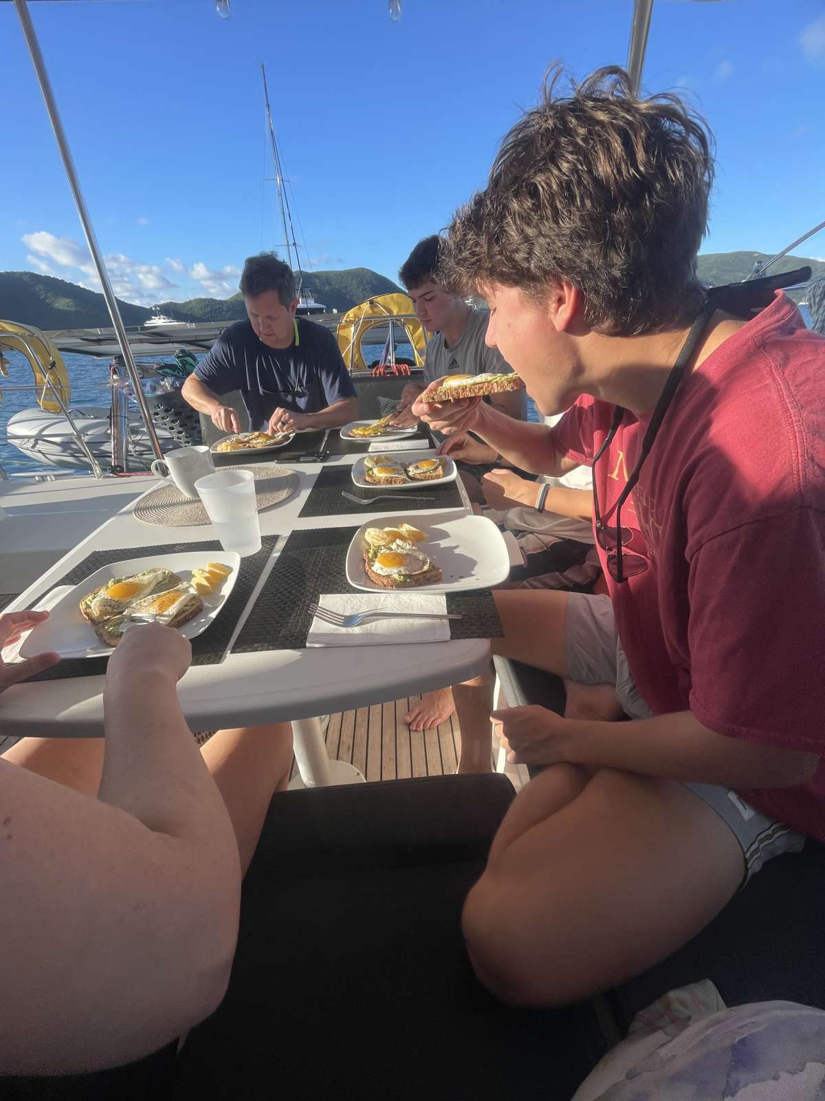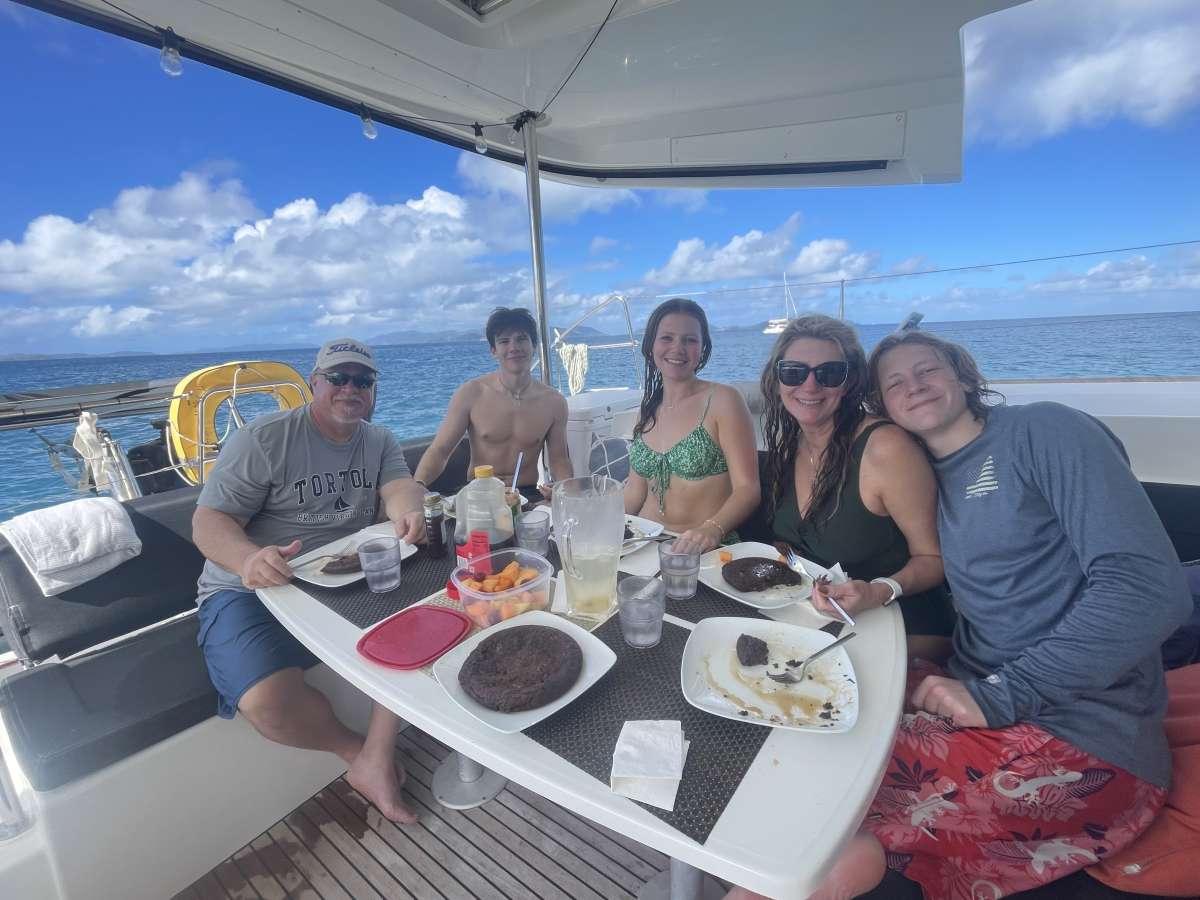 Captain Ryan and chef Steph, thank you guys for the most amazing experience! You made us feel welcome in right at home from the moment we got out of the taxi! Your passion for sailing and adventure shows. The food was delicious- thank you for mentoring when 1-eyed little tunny! This was a trip of a lifetime!! We loved the snorkeling, hiking, and waking up to a new adventure each day. Thank you captain for taking the boys dinghy slinging. We have memories that will last us a lifetime, thanks to both of you!Aimee, Ronnie, Andrew, & Hunter