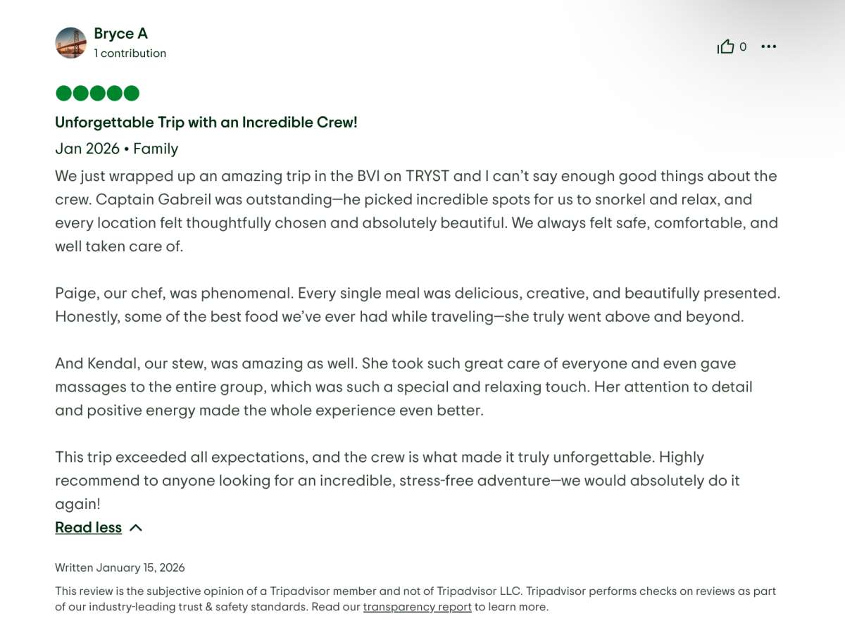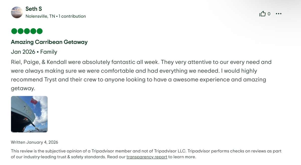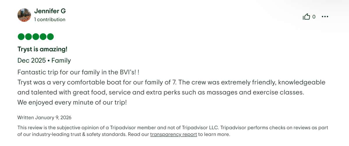 'Tryst' es un Sailing Catamaran con capacidad para 11 huéspedes, disponible para charter con tripulación con base en USVI / BVI / SXM.