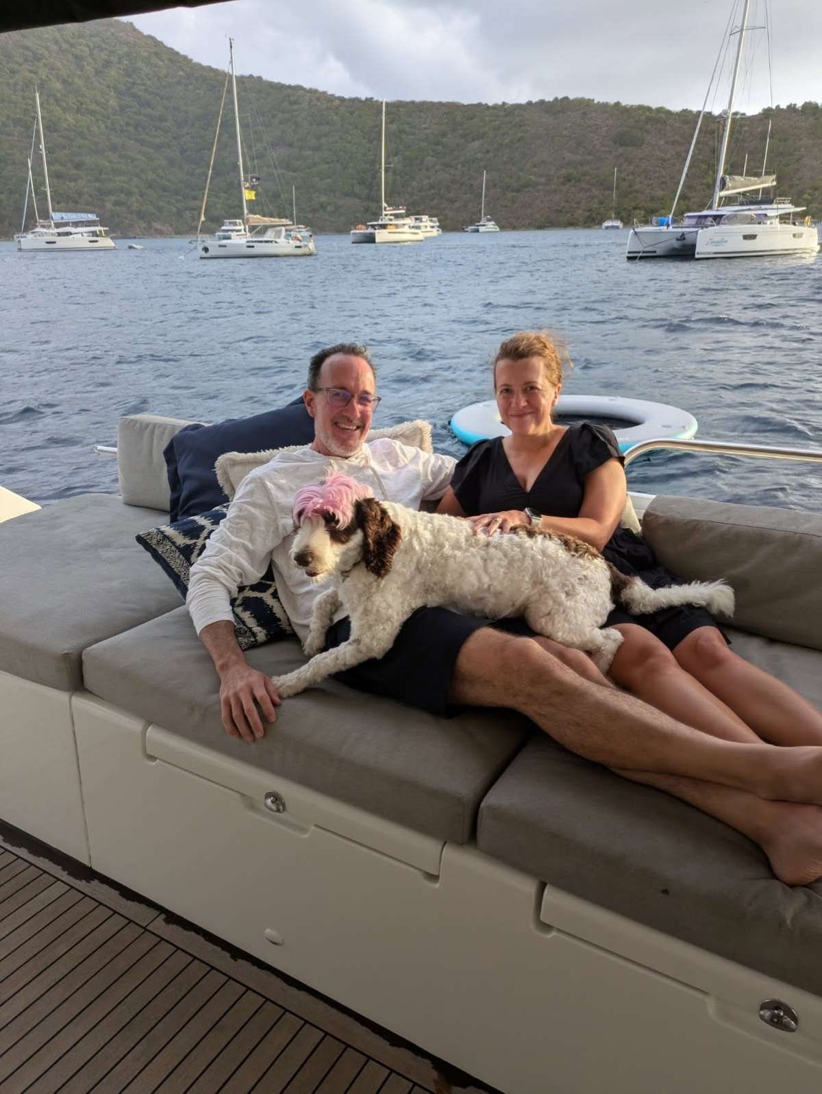 Where can I begin. My wife wanted to do something special for her birthday. We had all kinds of ideas and plans, however she wanted to do something extra special. She happened upon private charter boats and stumbled into Dreamcatcher. From the very beginning, Stef and Jake were prompt in their email replies and responses answering all the important questions as well as the ignorant ones since we had never done anything like this before. Jake and Stef took it in stride and were very kind and polite through the whole process down to the best ways to travel and get there, offering advice along the way. The conference call the week before was a big help as it answered a lot of questions that came up at the last minute such as things to pack, what to prepare for, down to last minute dining and drink choices. The day we arrived in St. Thomas we caught a cab from the airport to the marina where Captain Jake stood waiting for us with a cart to help us move all our gear from the cab to the boat. When we arrived at the boat, Stef was ready and willing to do whatever she needed to and welcome us aboard. “We are a shoe free ship so drop them in this basket and come on in!” We were shown where our sleeping quarters would be for the week. We already had a great idea of what we were walking into because the preference sheet as well as sleeping arrangements were well laid out for us prior to our arrival so we knew EXACTLY what to expect. I will say, it went above and beyond our expectations. Everything was tidy, clean, and neat. A welcome basket greeted us as soon as we entered our rooms that included a journal, welcome note from the crew, as well as sunscreen and towels. Since it was my wife’s birthday, they went above and beyond and decorated the door to our room with Happy Birthday banners. Before we could turn around, as we were all wary and famished from our travels, we were greeted with an appetizer and shown where the beverages were so we could immediately begin our vacation. We set sail and went to our first bay for the night and traveled to many on our seven-day tour. Captain Jake is excellent and knows the waters around us, as well as how to provide a smooth sail as to not disturb us or create any illness on our moves from port to port. We motored part of the journey and sailed the rest. He was willing and able to let us be involved in the process and stood by as we swapped sea stories of our own personal adventures through our lives. The food on board was top notch. Every meal was shared with laughter and joy as we indulged in what Stef prepared for us. Breakfast was fantastic. Lunch, even better. There were several days that she spent all day prepping for dinner. You could really tell she put her heart and soul into it as dinner was normally quiet as we all savored in the fare that she set out in front of us. Although we filled out preference sheets, we never really designated meals as we are uncomplicated and easy going. There were 5 of us in our party total and some had special requests, but Stef nailed every meal and fit everyone’s specific requests from beginning to end. You want chicken nuggets? No problem. Pizza? Why not. Fish tacos? Our pleasure. Fresh lobster on the grill that we caught while diving? Absolutely! We were never left leaving the table hungry and as the day melted on, there were always snacks available and of course, cold beverages of whatever we wanted. Before dinner every evening we had a light snack as well as hand crafted cocktails to boot to wash down our exciting days as we traded stories of our current and past adventures. My personal favorite of every day was saying goodbye to the day and blowing the conch shell as the sun set on the horizon. I am a little bit more of a night owl, so Jake and I got to sit up late many nights and chat. The conversation was warm, friendly, and welcoming as we shared about ourselves and learned about each other. There was much laughter to be had. We got to see so much on our journey that it is hard to put it all into words. Beautiful bays, amazing wildlife, shipwrecks, private beaches and so much more. What do you want to do today? Lay on the net and take a nap? Hang some hammocks and swing in the breeze? Float around on some rafts or swim? Give paddle boarding a try? Go to a private beach and sunbathe? Get scuba certified and go for a dive? How about a snorkel? Grab some lunch from a floating taco barge or stop in town for some shopping? Literally, anything that we wanted, they accommodated without question. I wanted to also point out that I personally, was a little reluctant about vacationing with two dogs on board a 47’ catamaran, but Daisy and Parker are so well behaved, they left an impression on our hearts. The day of my wife’s birthday, we were able to use the boat as our home and decorate it for her to feel special. That evening, Stef and Jake secured a special cake made just for my wife and we were all able to enjoy it. The cake was so big, that we enjoyed the other half the next day! Stef split it in half and flopped it down on the table for us to all to delve into and enjoy. Towards the end, we were all presented with a video of our vacation that highlighted our top moments and passed to us to keep this memory forever. I could drone on and on how amazing this whole experience was, but I will leave you with these final thoughts. This experience has ruined all my other resort travels in the future as this was so perfect, nothing would compare to having this experience again. We went on a vacation for that purpose. To disconnect, unwind, and relax. We came as guests, but we left with friends. Jake and Stef will now be ingrained in our lives forever and there is absolutely no doubt in my mind, we will be back to see them again and again, and again. This vacation is everything you make it. The more specific you are with them about your wants, needs, and desires, the more perfect they will make it for you.