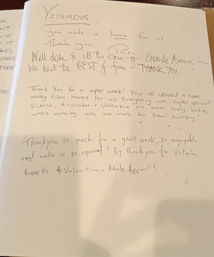 A heartfelt thank you for looking after us so wonderfully during our time on the Grande Amore.