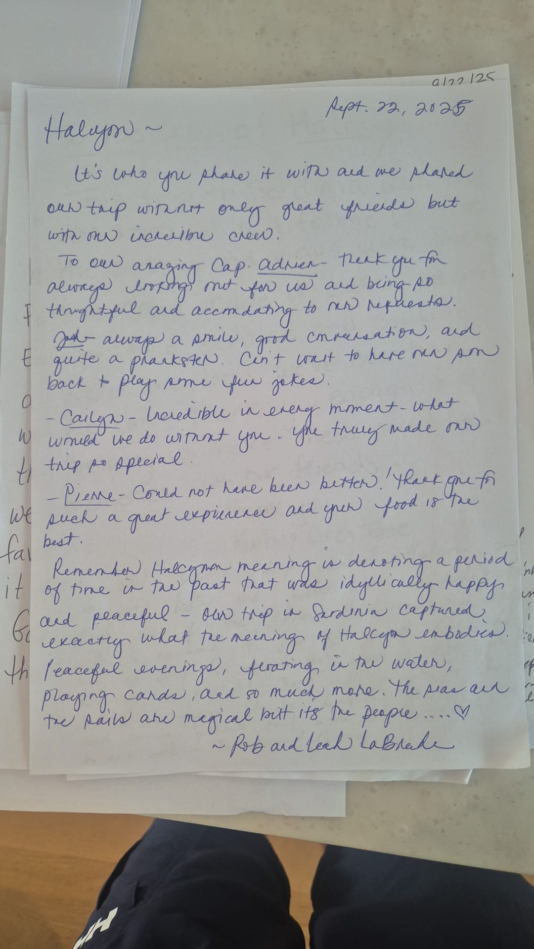 This is our second trip aboard Halcyon and it gets better and better when we didn't think that was possible. Adrien and Josh communicate effortlessly and make it look so easy to navigate this vessel in tight spaces. Pierre's food was a highlight - Beef Wellington was a showstopper! And Cailyn stepped into her demanding role with a warmth and can-do attitude that made her a wonderful addition to our week in Sardinia.