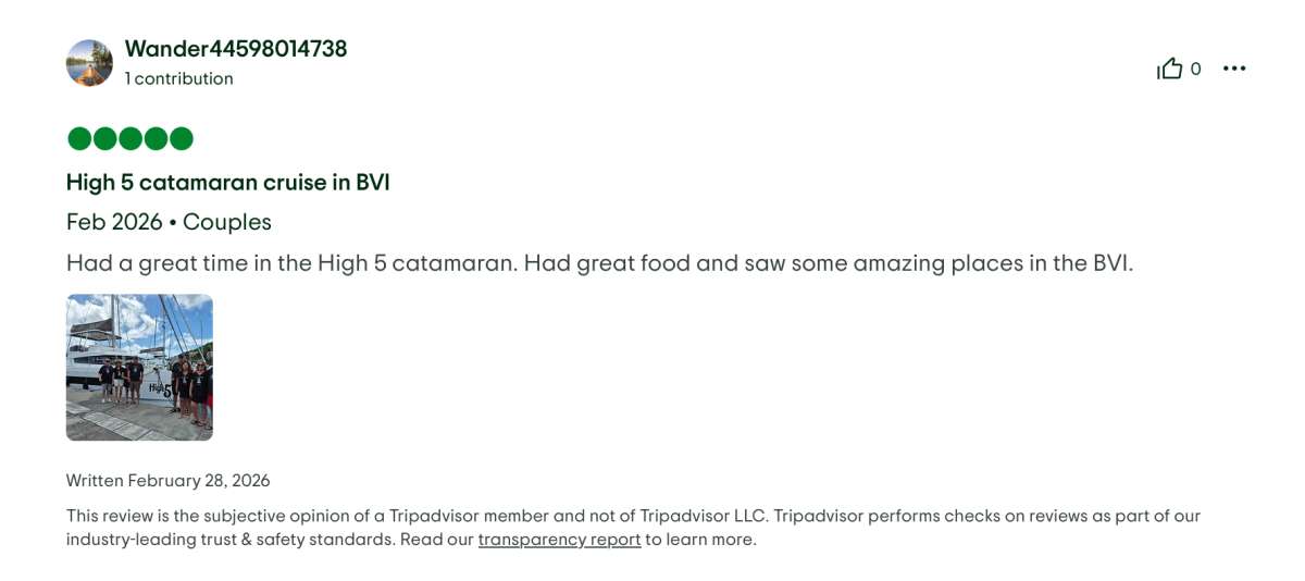'HIGH 5' is a Sailing Catamaran, accommodating up to 8 guests, available for crewed charter with a home base in BVI.