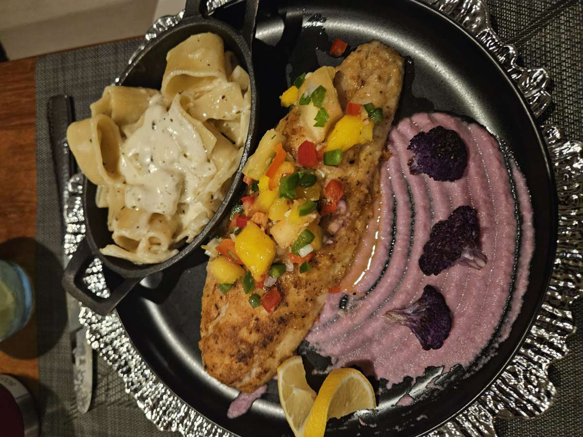 Seafood Gratin (locally caught Mahi, Crab, Shrimp) with Julienne Leeks & Carrots (GF)