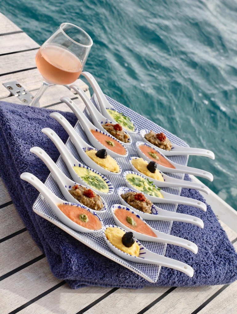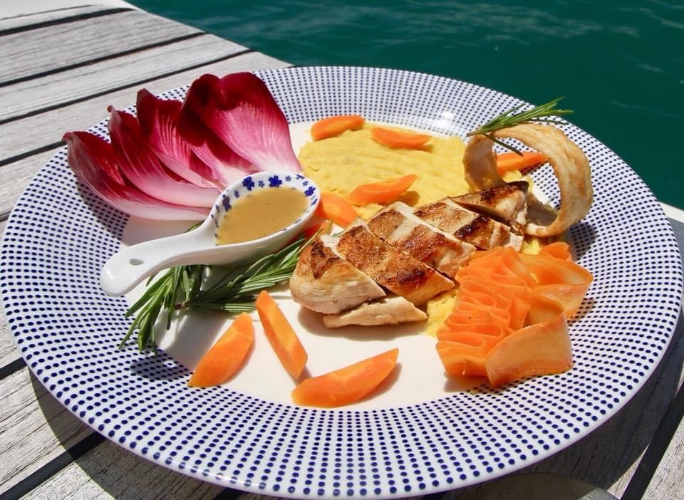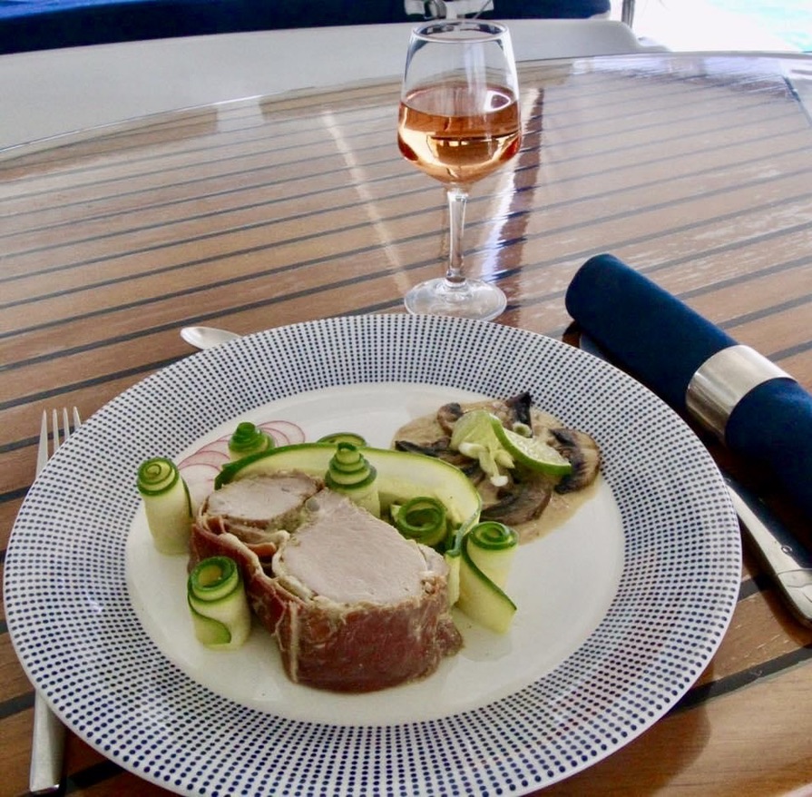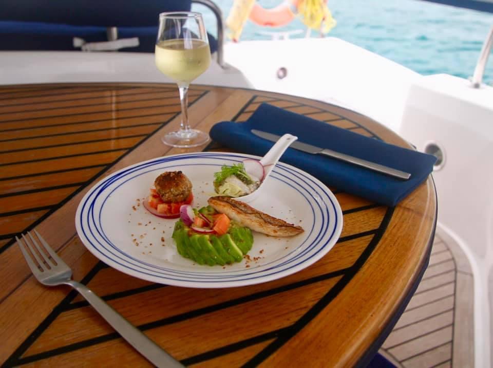 The crew provides a gourmet culinary experience on board Isolablue with fine foods surrounded by the beauty of the Grenadine islands. They can adapt to most diets (gluten free, diary free, vegetarian, vegan…. ) Please request the flyer on Gourmet Charters for further information.