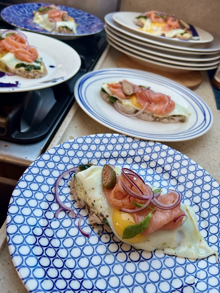 Florentine eggs (poached egg and spinach over homemade toasted bread)
