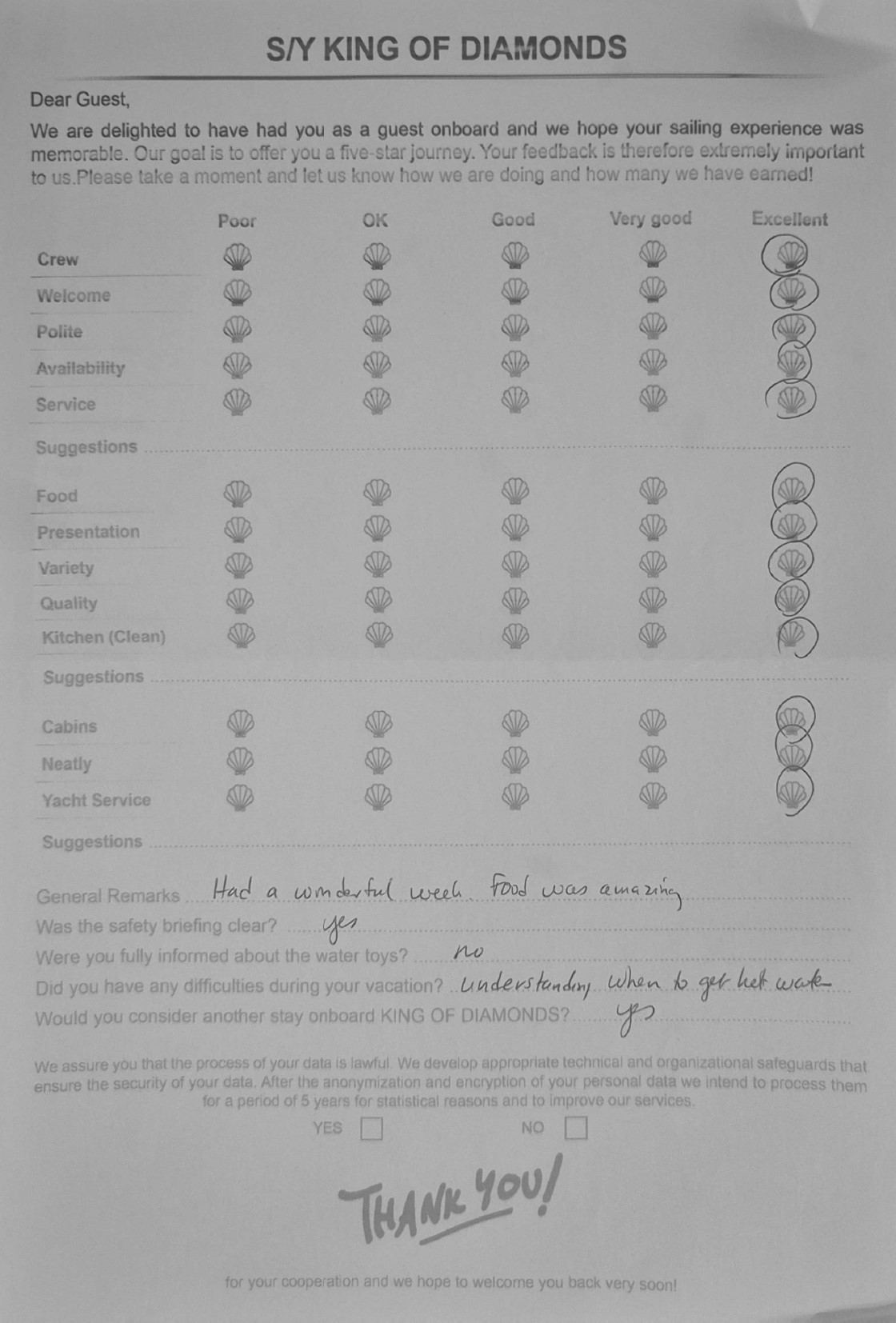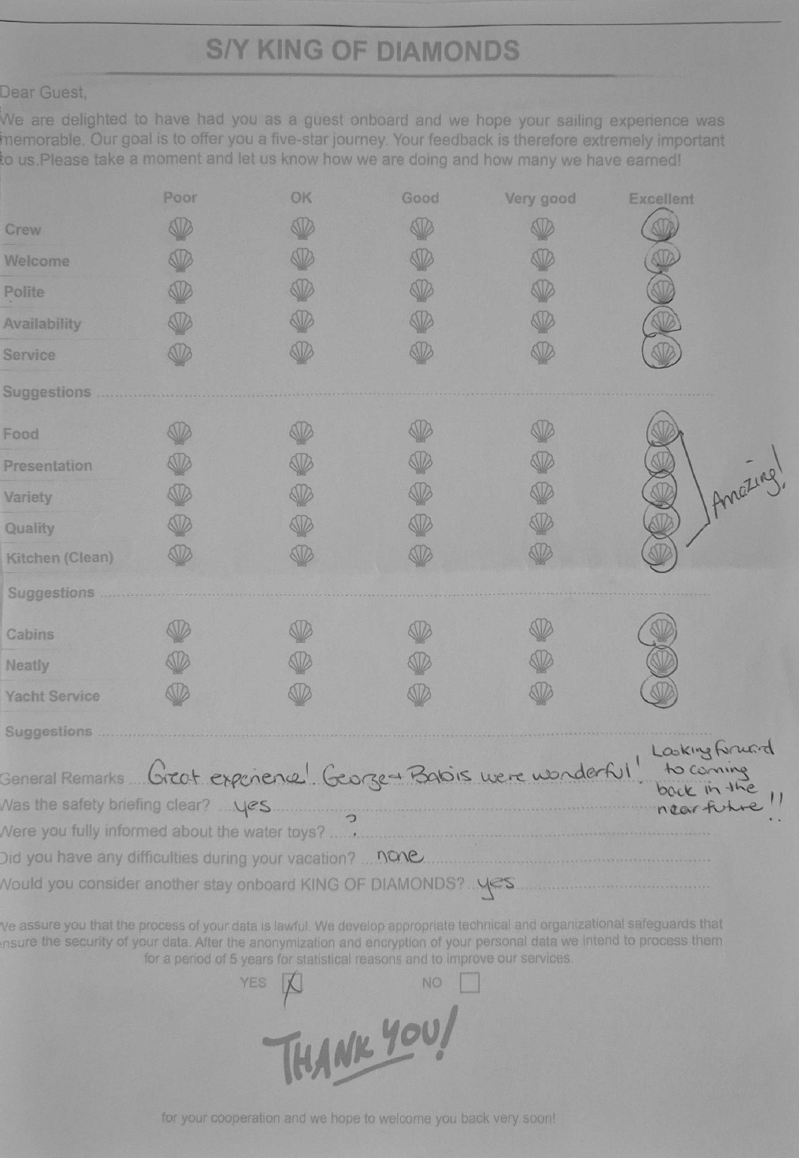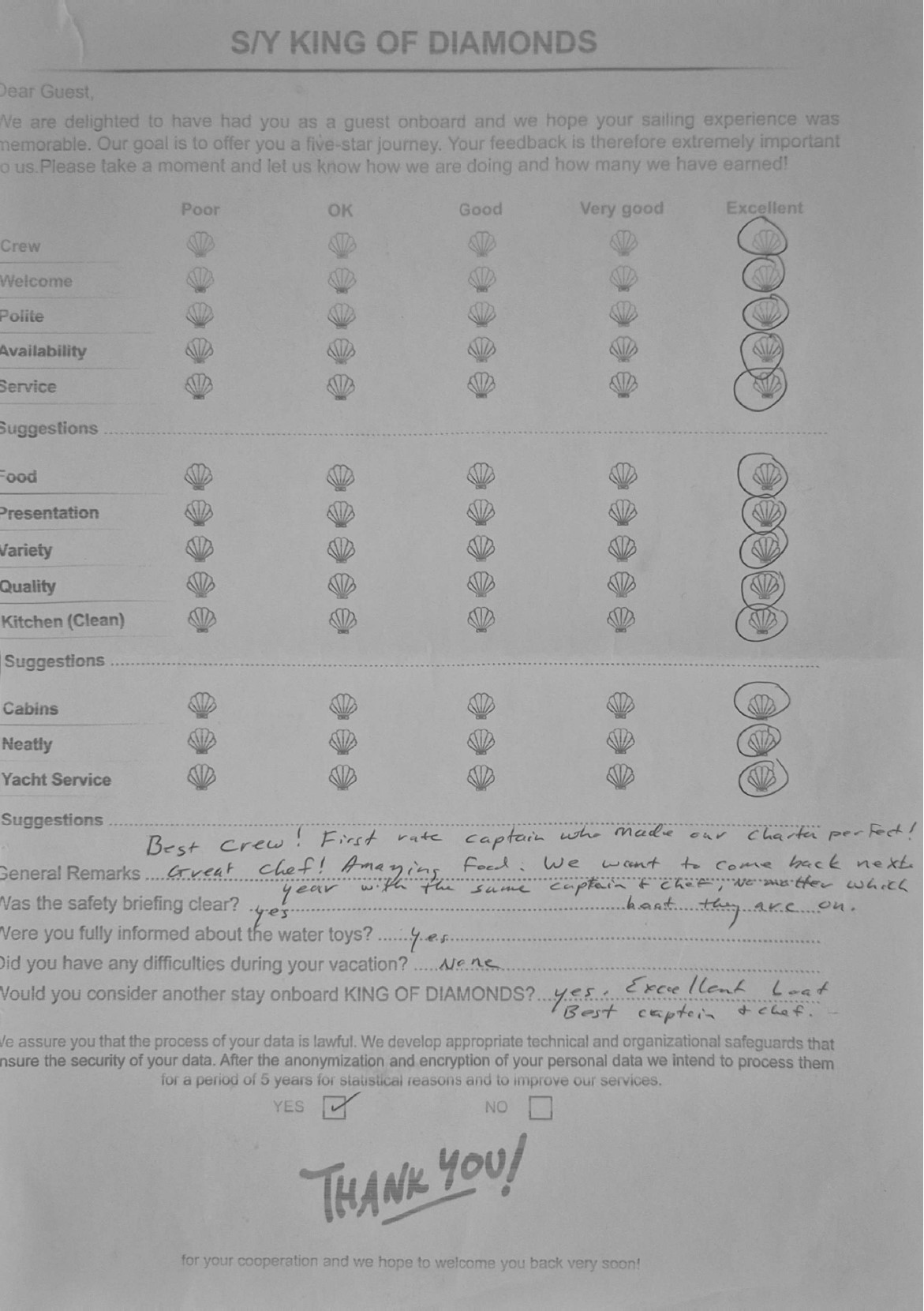 KING OF DIAMONDS is a Lagoon 560 S2 model built in 2016 and refitted in 2024! She offers five cabins exclusively for the guests and is equipped with all the amenities of a 5-star floating hotel! Huge living space, large flybridge area to relax while sailing and unique forward lounge area to chill as you explore the Greek seas.