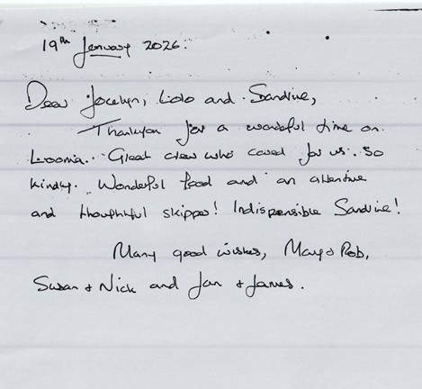Thank you so very much for a very wonderful week aboard Looma yacht!