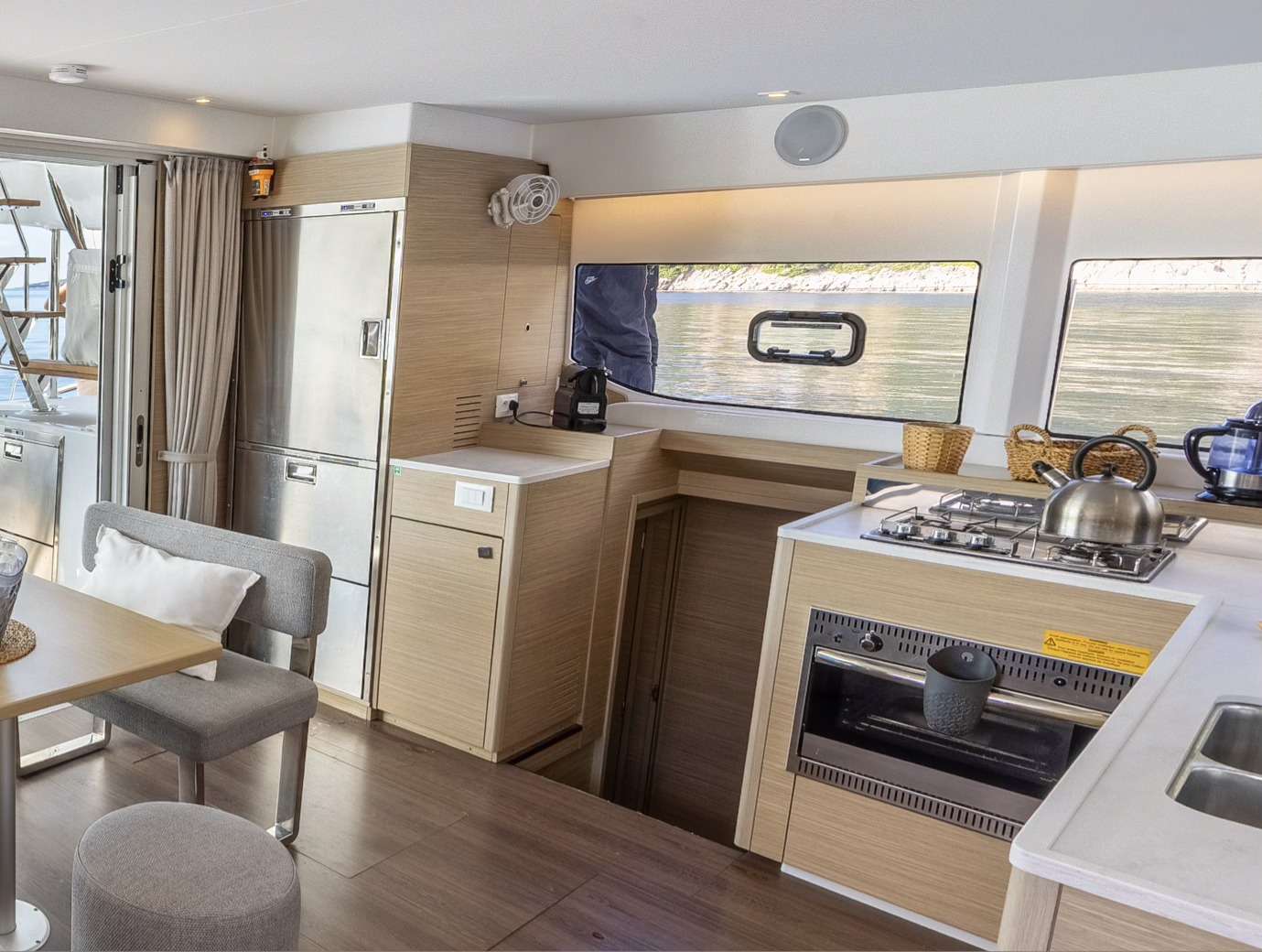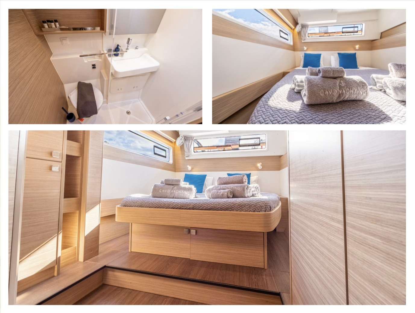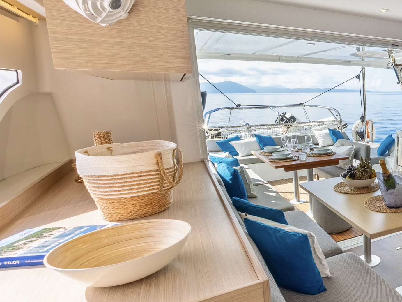 'NEMI' is a Sailing Catamaran, accommodating up to 8 guests, available for crewed charter with a home base in Lefkas, Greece.