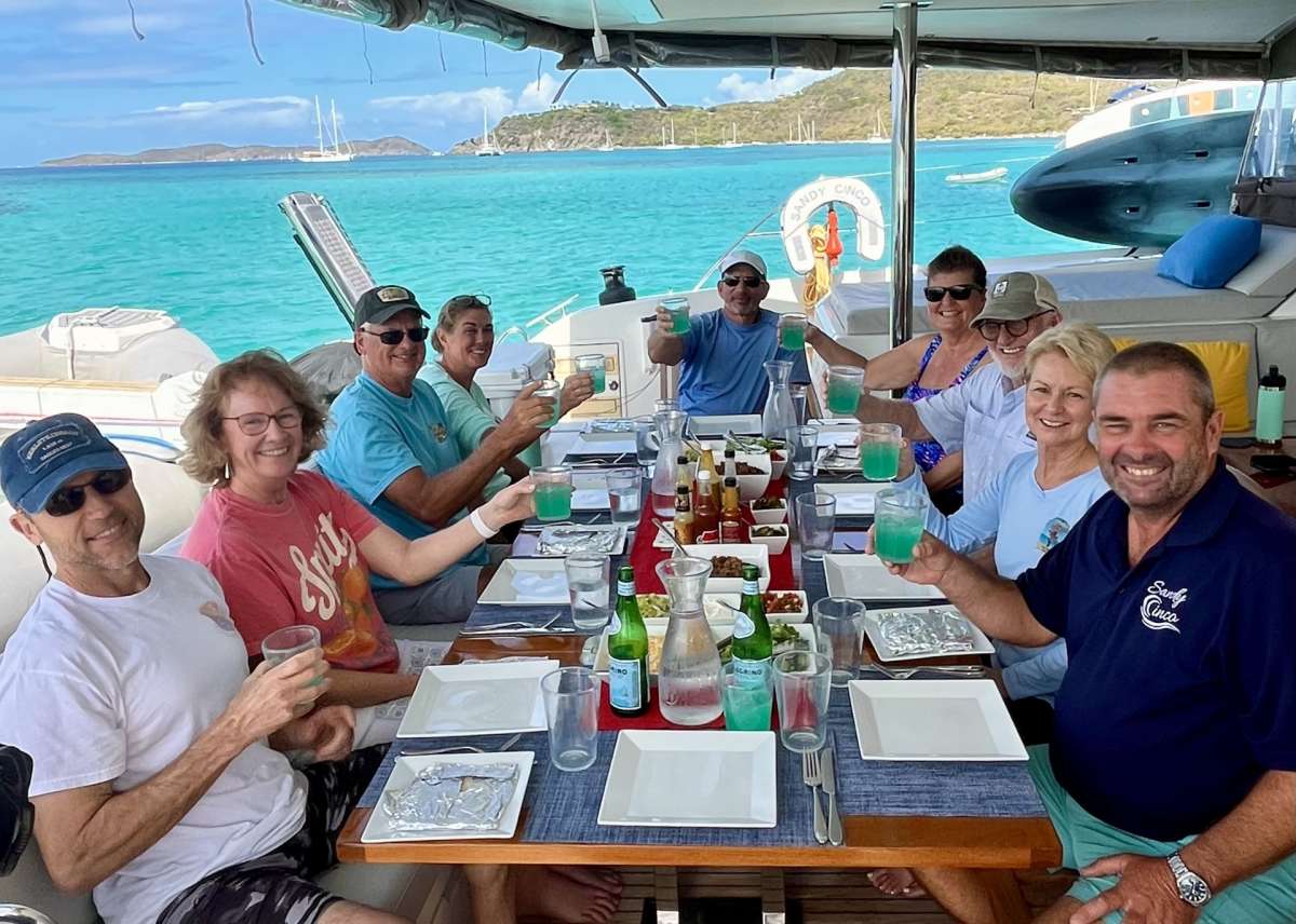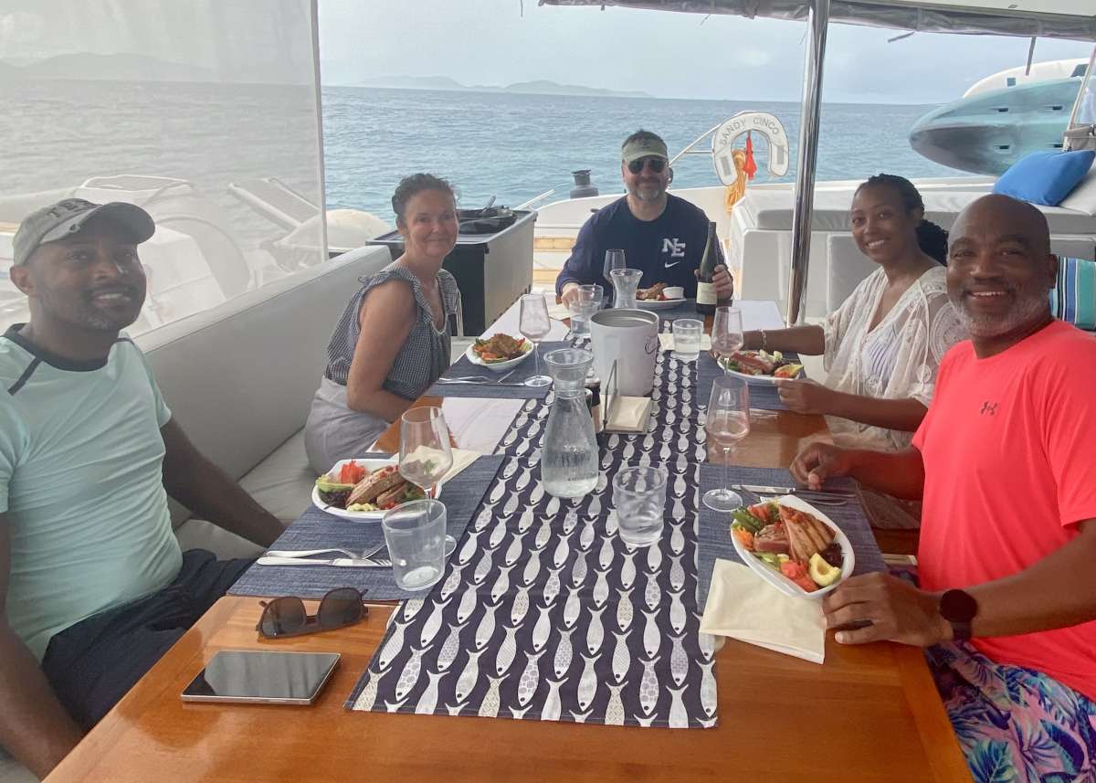 A once in a lifetime trip! Everything about the trip was amazing! The food was spectacular: every single meal was new and so delicious. I ate too much because I couldn't stop eating the food Lizzy prepared. Mike did a spot-on job of keeping us away from crowds, finding the best snorkeling spots and setting us up for stunning sunsets. I cannot recommend Mike and Lizzy and the Sandy Cinco enough. The service was perfect, and they know how to give the best BVI experience. We can't wait to come back! J&T S