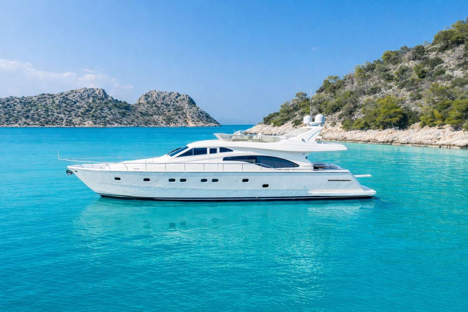 Cruise in style aboard the stunning Ferretti 68, meticulously maintained and based in Mykonos. Offering both daily and weekly charters, this yacht provides a perfect blend of luxury, comfort, and adventure. With an experienced and dedicated crew, guests can enjoy a seamless and unforgettable experience on the water, exploring the vibrant Cycladic islands.