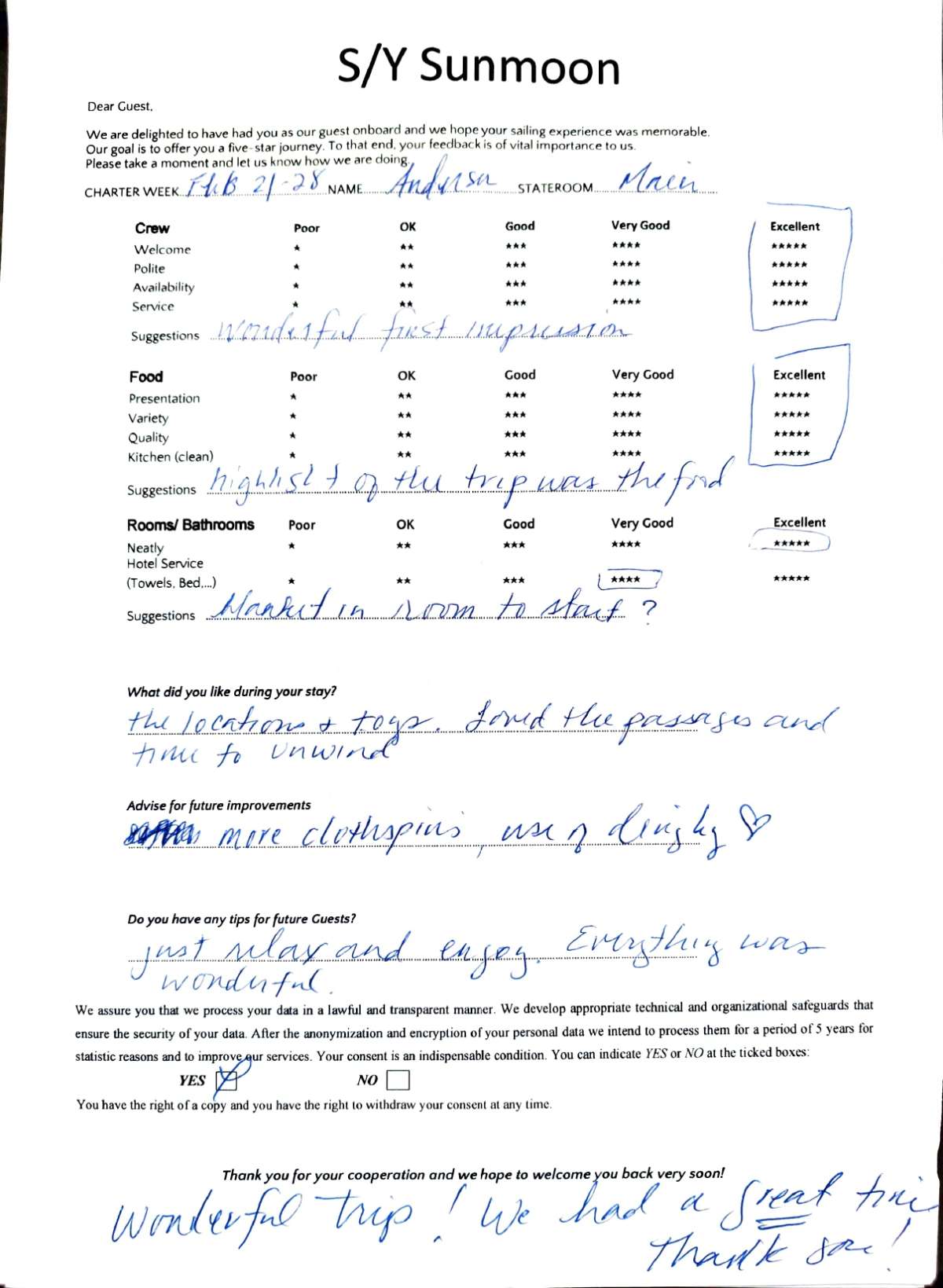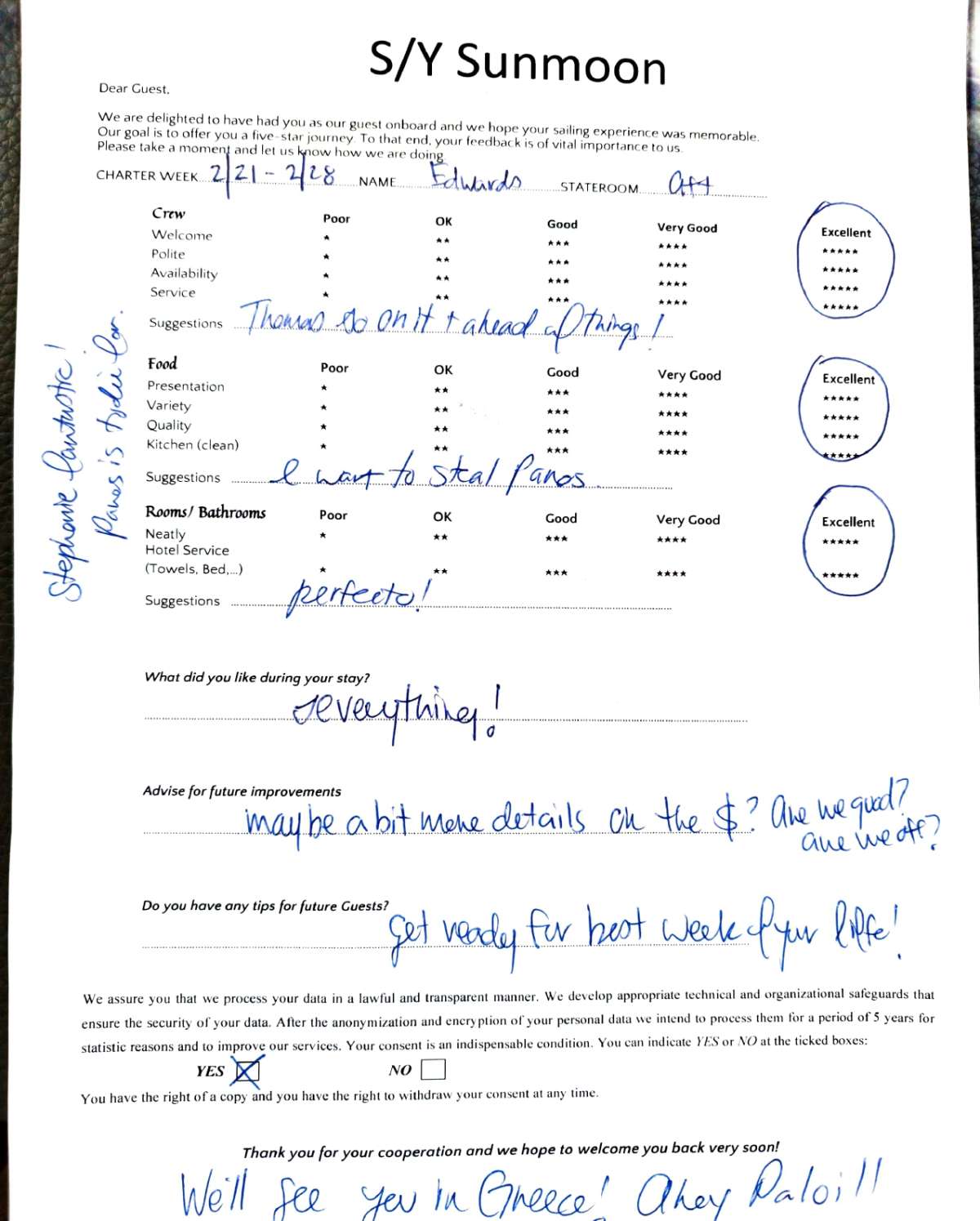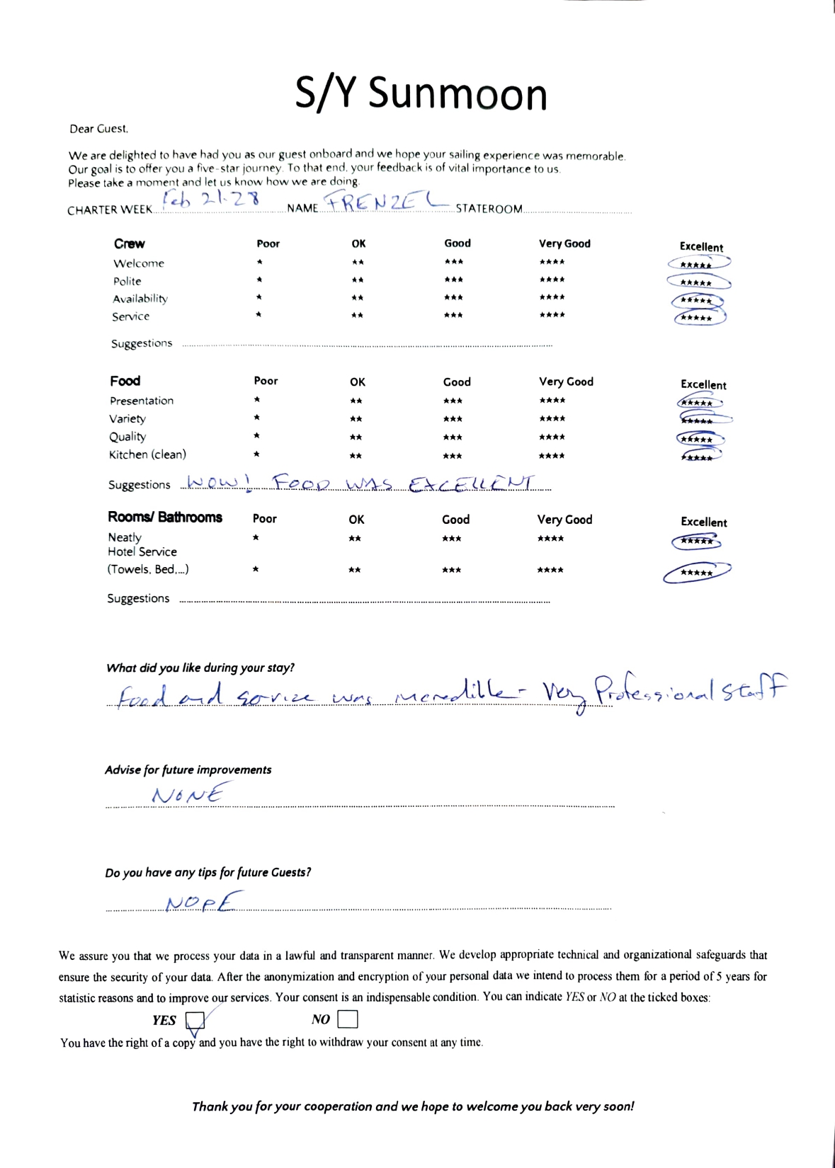 SUNMOON is guided by a professional and welcoming crew of three—captain, chef, and stewardess—each dedicated to delivering exceptional service. From gourmet dining to tailored itineraries and warm hospitality, the crew ensures that every moment aboard SUNMOON is memorable.