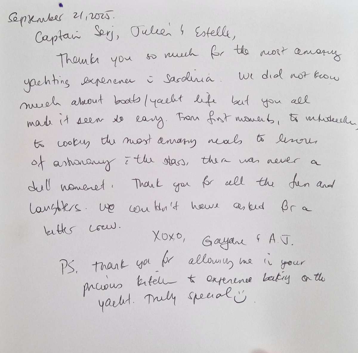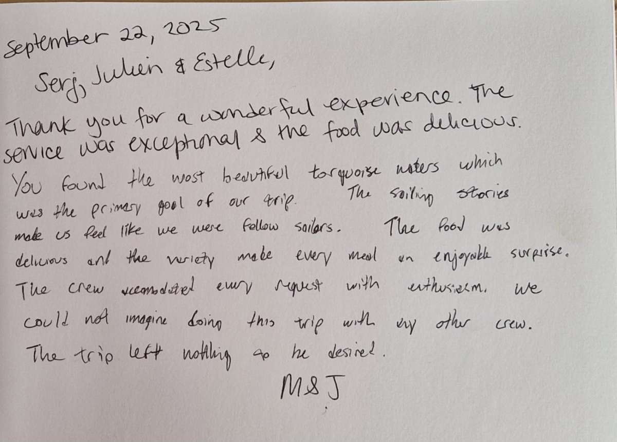 The professional crew of a captain, chef and stewardess is the guarantee of expertise and personalized service of high quality.