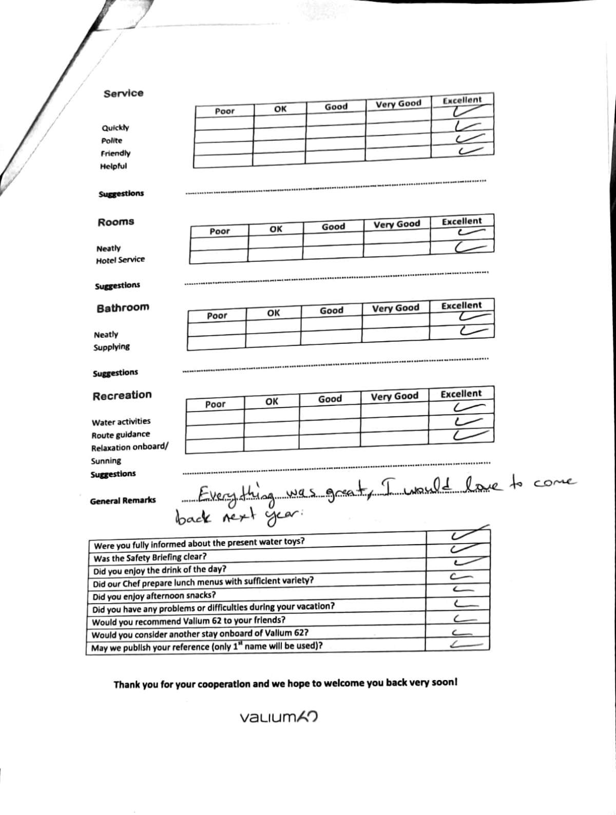 Thank you for an exceptional vacation. Everything was perfect and i loved that we did a lot of sailing!